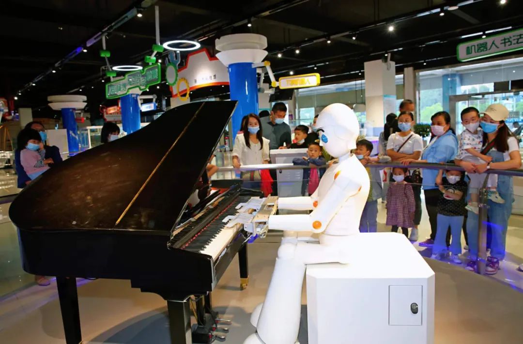 首先接待大家的是迎賓機器人,“她”先向大家問好,然后有條不紊地與大家互動。機器人鋼琴家揮動著靈巧的雙手,彈出悠揚悅耳的琴聲,滋潤著大家的心田。