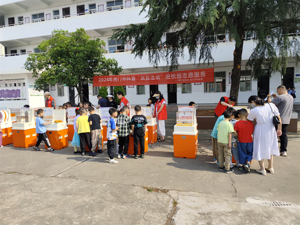 5月22日,荊門(mén)市科技館科普“雙百活動(dòng)”走進(jìn)沙洋縣高陽(yáng)小學(xué),讓學(xué)生們?cè)谛@內(nèi)就能體驗(yàn)到形形色色的科技展品,感受科學(xué)魅力。