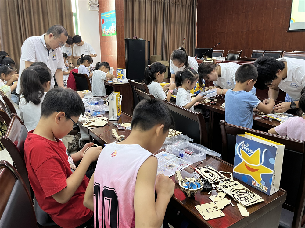 許多孩子在家長的帶領(lǐng)下,早早來到了子陵村黨群服務(wù)中心,等待公益課堂開講。本次課程的內(nèi)容是制作人體感應(yīng)風(fēng)扇,了解完應(yīng)用原理后,小朋友們?nèi)耸忠环莶牧习?,?dòng)手制作迷你人體感應(yīng)風(fēng)扇。孩子們對照著說明書,全神貫注地組裝著零件。在家長、老師和志愿者的幫助下,陸續(xù)有小朋友安裝完畢電扇并試驗(yàn)成功,臉上滿滿的成就感。