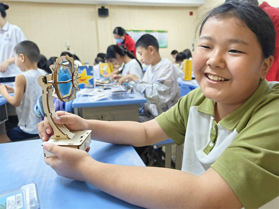 “我的風(fēng)扇做好了,好涼快呀!”在科普公益課堂上,志愿者們耐心教授小朋友制作“人體感應(yīng)風(fēng)扇”,孩子們興致勃勃,積極動手實踐。完成了制作的小朋友,興奮地舉著風(fēng)扇請大家“體驗”。