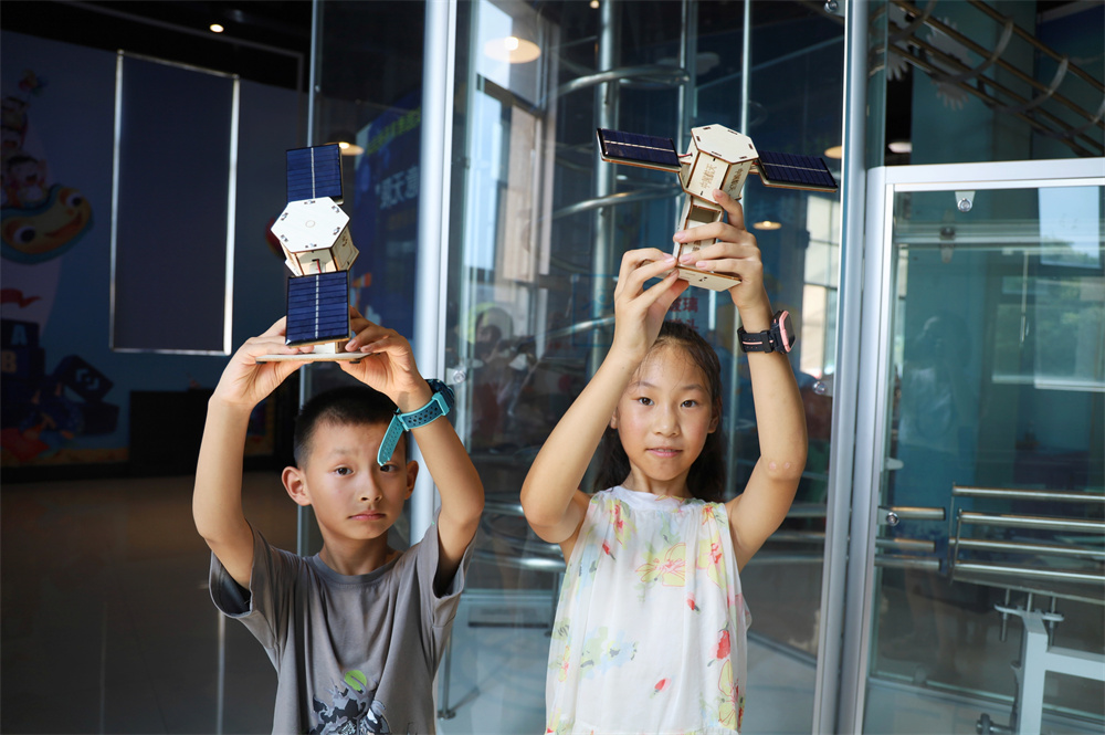 經(jīng)過一番努力,一個個精巧的人造衛(wèi)星模型逐漸成型。當完成組裝,進行試驗時,看著自己搭建的人造衛(wèi)星模型在太陽下轉(zhuǎn)動起來,小朋友們激動又興奮。