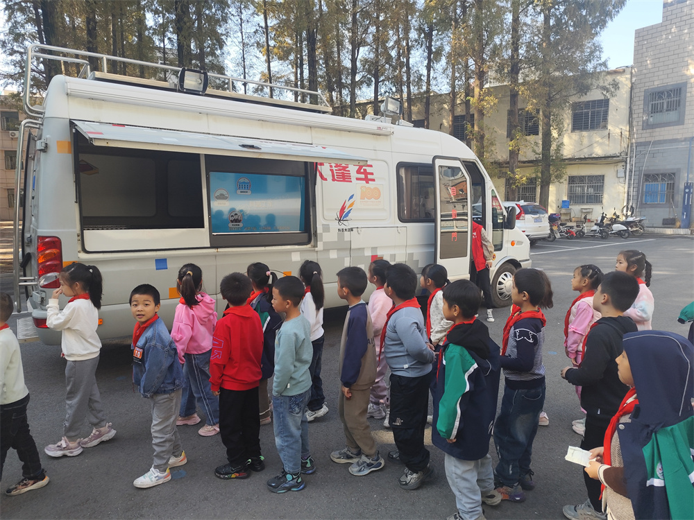 除了大篷車展品,也有許多學(xué)生駐足瀏覽“提升全民科學(xué)素質(zhì),協(xié)力建設(shè)科技強(qiáng)國(guó)”主題圖片展,與同伴熱烈討論圖片中展示的高科技成果。與此同時(shí),科普大篷車上的科普視頻也讓孩子們認(rèn)識(shí)到我國(guó)科普工作的重要意義。