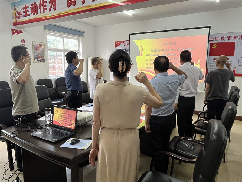 7月1日,荊門市科技館黨支部開展七月黨員主題日活動。本次活動以“慶祝中國共產黨成立104周年”為主題,市科技館支部全體黨員參加。