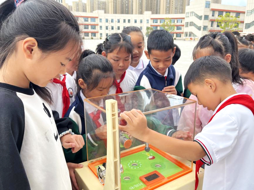 科普大篷車展品區(qū)更是熱鬧非凡。電磁感應(yīng)裝置、光學(xué)趣味儀器、力學(xué)原理互動(dòng)模型等數(shù)十件展品依次排開(kāi),學(xué)生們親手操作、親身體驗(yàn),在玩中探索科學(xué)奧秘。有的專注研究伯努利現(xiàn)象,有的嘗試通過(guò)鏡片觀察物體變形,現(xiàn)場(chǎng)歡笑聲不斷,不少孩子感嘆“這比游樂(lè)園還好玩!”